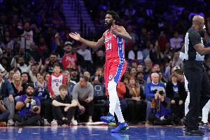 76人内线恩比德上半场手感冰凉,运动战频频打铁,主要靠罚球拿分,不过在场上整体表现还算全面。