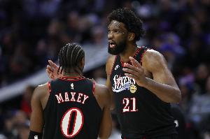 本场比赛,76人球星恩比德表现出色,三节时间就已经刷新个人的赛季得分纪录(此前29分);全场比赛,在32分钟的时间里,他投篮23中12,三分球8中2,罚球18中13,轰下39分9篮板3助攻1抢断的数据。