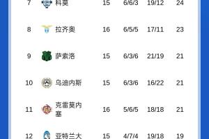体育资讯12月21日讯 意甲第16轮率先结束2场比赛,尤文2-1罗马,拉齐奥0-0克雷莫内塞,最新积分榜如下: