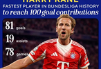 里程碑!凯恩仅用78场德甲,就完成 直接参与100 球(⚽81 球 + 🎯19 助),成为德甲历史最快达成这一成就的球员!🔥⏱ 第二快纪录是119场的罗本。德甲第15轮,拜仁4-0海登海姆,凯恩在全场补时阶段打入一球。#海登海姆0比4拜仁#