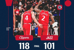 直播吧1月2日讯 快船今日在主场118-101有惊无险战胜爵士。