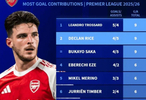 阿森纳本赛季英超参与进球榜: