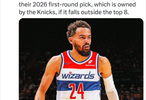 奇才大概率会优先保住他们今年的首轮选秀权——前8顺位保护,否则归属尼克斯。同时为了兼顾球员的负荷和长期健康,特雷-杨预计本赛季剩余比赛的出场时间不会太多#老鹰将特雷杨交易到奇才#