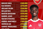 据多家媒体消息,英超冠军大热门阿森纳核心萨卡已经完成续约,续约后他的周薪高达30万镑。《太阳报》对阿森纳队内的薪资情况进行了盘点,具体如下↓