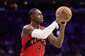GIF-巴雷特弧顶三分命中,猛龙领先到20分