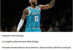 与此同时,据NBA中国官网报道:黄蜂计划在交易截止日前兜售迈尔斯·布里奇斯。基于此,美媒《Fadeaway World》透露湖人准备用八村塁、克内克特、31年首轮去换布里奇斯。