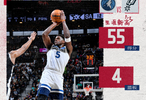 此役,爱德华兹缺阵两场后复出,出战40分钟33投19中,三分线外16中9罚球10中8,砍下生涯新高55分另有4篮板3助攻,其中第四节狂飙26分。