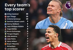 本赛季英超各队射手王(联赛进球)