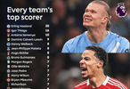 英超赛季射手榜出炉,哈兰德20球领跑