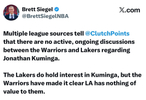 Brett Siegel今天否认了Evan Sidery关于湖人与勇士谈交易的报道: