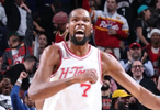 在第3节比赛中,火箭球员凯文-杜兰特9投6中砍下16分3篮板1助攻。