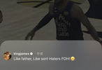 詹姆斯转发了本场他和布朗尼先后完成扣篮的片段,并评论道:“有其父必有其子!黑子滚粗!😁”