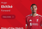 最终经过英超官网球迷投票,埃基蒂克以51%的得票率当选全场最佳球员。