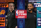 在1月,奥特助太阳取得11胜5负的战绩;查尔斯·李1月助黄蜂取得11胜6负的战绩。两人均为生涯首次当选月最佳教练。