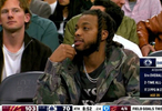 快船主场迎战骑士,新援加兰来到板凳席观战。