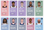 波尔津吉斯是过去5年篮下降准率最好的球员