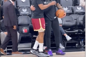 本场比赛是哈登的骑士生涯首秀,他赛前和2009届的同级生德罗赞耳语寒暄。