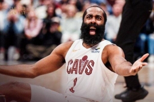 这不给3+1?骑士赢球海报:封面直接是哈登坐在地上对裁判摊手