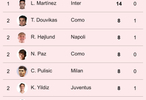【意甲射手榜】 2025-26赛季#意甲联赛# 第24轮射手榜。👟#sempremilan#